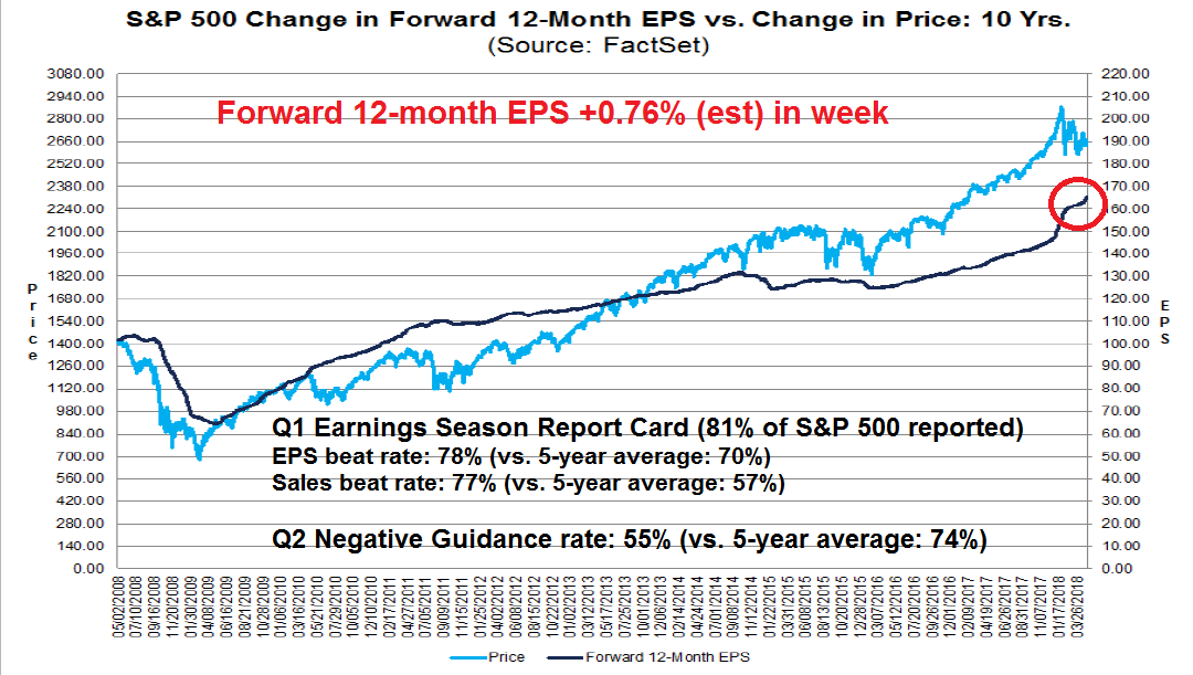 Q1 earnings season is mostly complete. Both the sales and EPS beat rates have been solid, and forward guidance is better than average. The Street has responded with upward estimate revisions, indicating positive fundamental momentum.