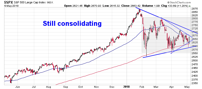 Until we see either some sustained upside momentum or a downside support break, my inner trader’s base case scenario is a continuation of the choppy consolidation where he buys the dips, and sells the rips. My inner investor remains bullish on equities.
