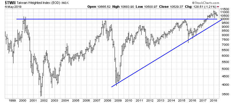 Here is the Taiwan market, which broke out to new highs.