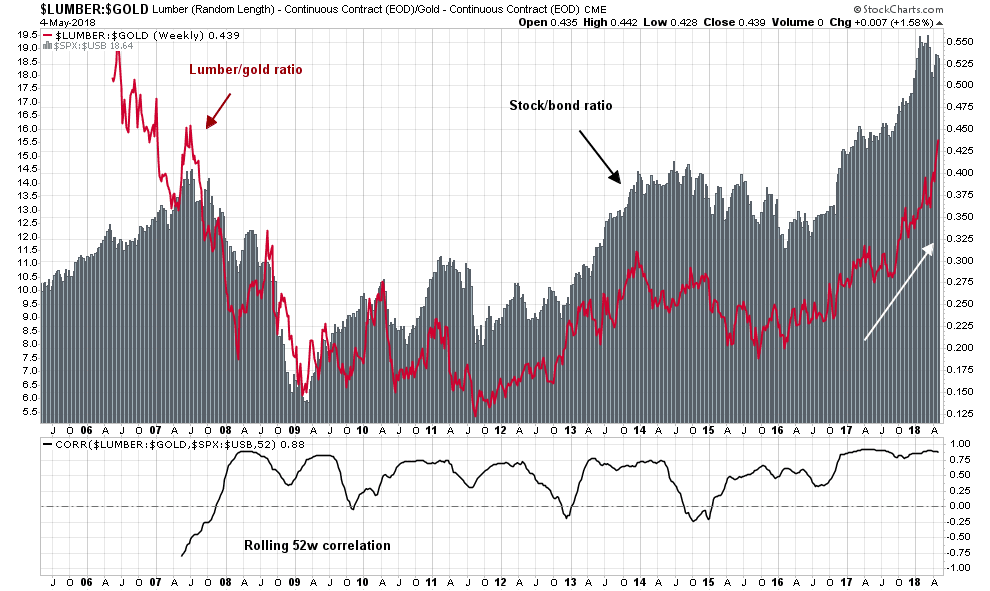 I began this post with the rhetorical question of which indicator investors should believe, the lumber/gold ratio or the copper/gold ratio? An analysis of the two ratios, as well as the Korea/ACWI ratio, shows that the bullish cyclical conclusion of the lumber/gold ratio as the outlier. The lumber/gold ratio has been affected by specific factors relating to US building materials market.