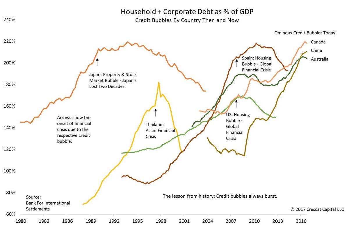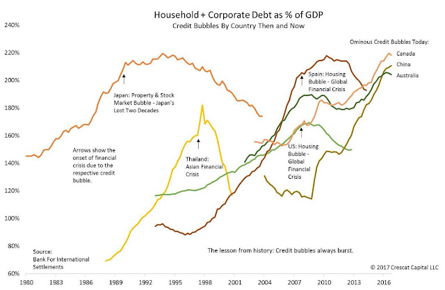 For some perspective. This chart depicts the debt bubble in Canada and Australia. If you are worried about runaway debt in China, then you should be equally concerned about the property bubble in the other Fragile Five countries.