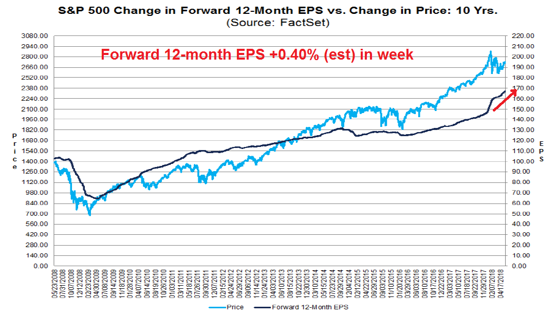 Looking to the week ahead, positive macro momentum is holding up this market. The latest update from FactSet shows that forward 12-month EPS continues to surge upward.