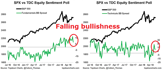 Mid-week market update: Callum Thomas conducts a regular weekly (unscientific) Twitter poll of equity market sentiment, and the latest results show that both fundamental and technical bullishness are falling. These readings suggest that bullish momentum is waning.