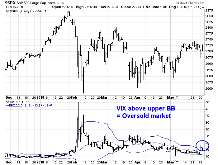 The narrative of short-term market weakness and intermediate term market strength is confirmed by the behavior of the VIX Index, which closed above its Daily Bollinger Band on Tuesday, indicating an oversold condition for stock prices. While the market did recover today (Wednesday), I expect some chop before stock prices can fully recover and the bull regain the upper hand. If QT related weakness should strike the markets on Thursday (see Offbeat Thursday and Friday forecasts), trader should be regarded that as a buying opportunity.