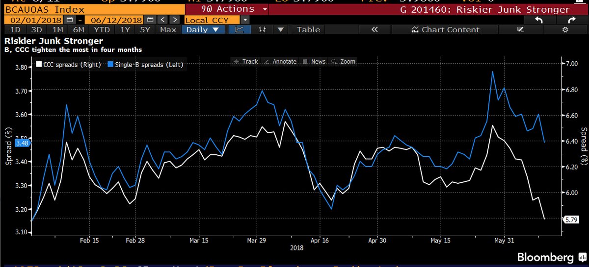 Risk appetite is returning to the markets after correction from the January market peak. Lisa Abromowicz at Bloomberg recently pointed out that investors have piled into the lowest rated junk bonds, which are outperforming.