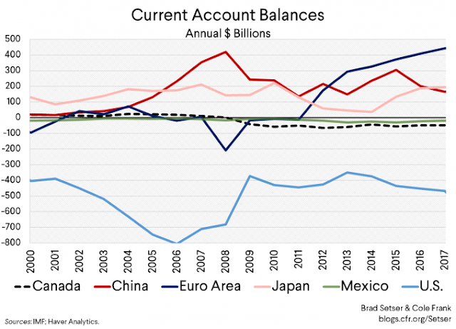 For some perspective, Brad Setser at the Council on Foreign Relations depicted the US current balance in two important ways. The first is in absolute dollar terms.