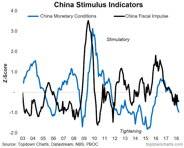 Moreover, China’s financial conditions are coming under increasing stress. A trade-induced slowdown is the last thing the economy needs. Last week, I had highlighted analysis from Callum Thomas that both fiscal and monetary policy were tightening.