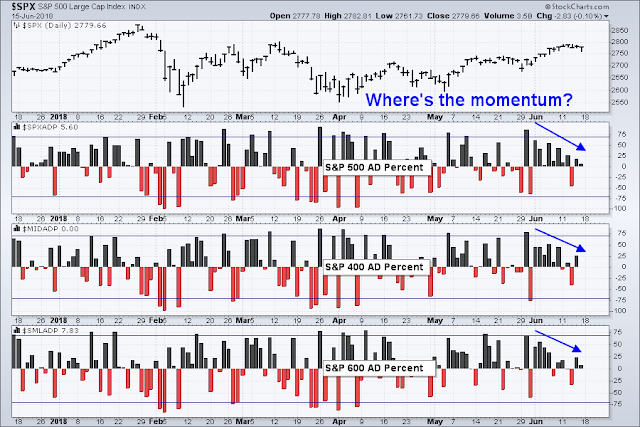 In the meantime, short term breadth metrics are weakening across the market cap spectrum. Until the market can start to show some strength and momentum, the correction or consolidation isn’t over yet.