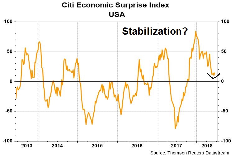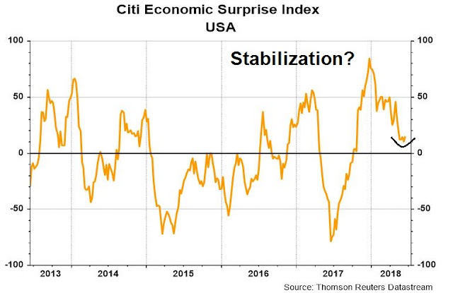 In the absence of political and trade policy fears, the fundamentals are strong. Last week’s report of retail sales was unusually strong. In general, the Citigroup Economic Surprise Index seems to have survived the seasonal weakness often seen in H1 and appears to be turning around.