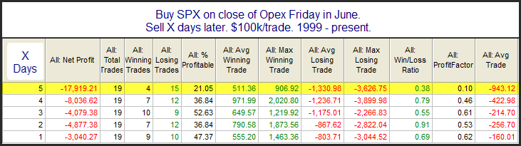 Stock prices are also facing a seasonal headwind this week. Rob Hanna at Quantifiable Edges found that the week after June OpEx has been weak. On average, stock prices have historically fallen steadily during the week, except for a reflex rally on Wednesday.