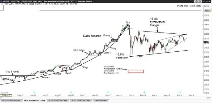 However, direction may not be resolved until a breakout of the 19-wk symmetrical traingle. One good approach is to only buy when price drops into a support zone. then keep tight stops.