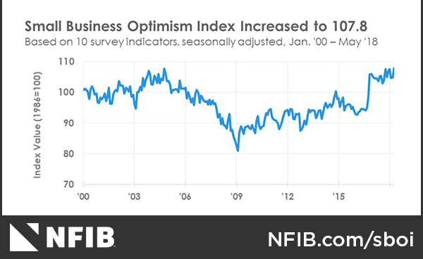 Business confidence is a funny and fragile thing. Right now, small business optimism stands at its second highest level in its 45-year history. What happens if the trade war effects start to bite, and begin to hurt sales and employment?