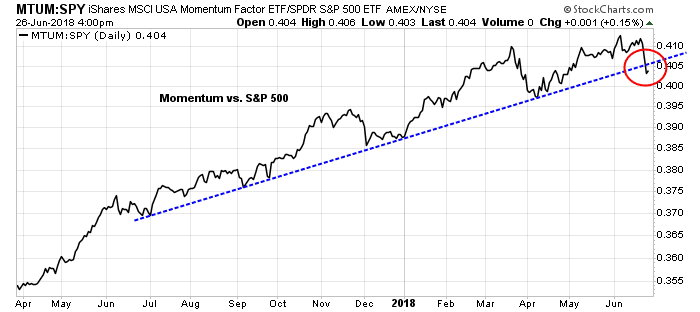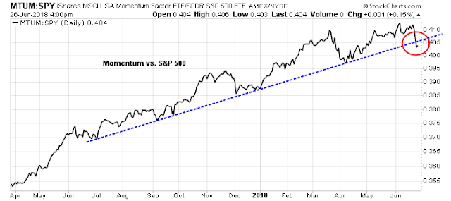 Equally serious is the breach of the relative uptrend by the price momentum factor. Assuming that the bull run were to continue, we will have to see a transition from Tech and momentum to another market leader.