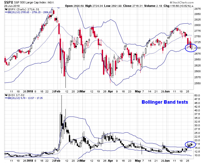 Now that the SPX flirted with the combination of the 2700 level and its lower Bollinger Band (BB), it’s time to see if the market is ready to bottom on a short-term and intermediate basis.