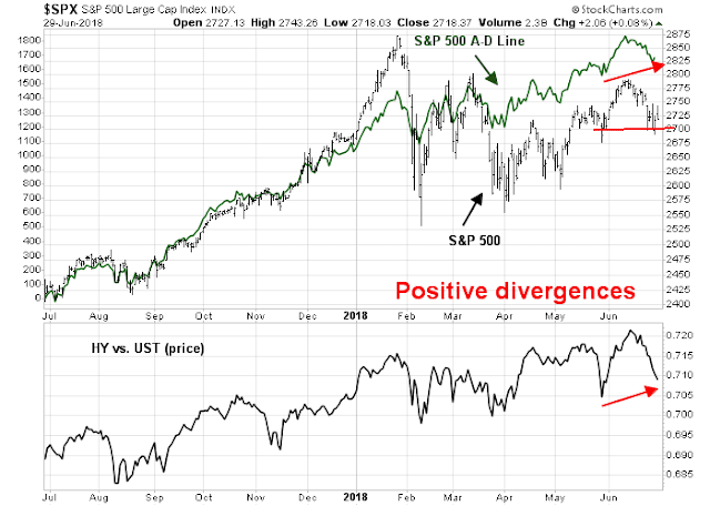 My inner investor remains constructive on equity prices. The intermediate term outlook remains positive, as measured by breadth and credit market risk appetite.