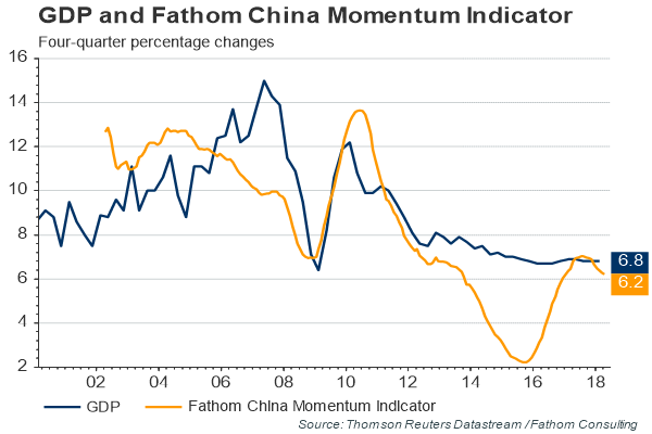 China is a different story. We all know about the trouble brewing in China. Fathom Consulting’s indicators show that growth is rolling over, and its estimate of actual GDP growth is 6.2%, which is well below the GDP growth rate.