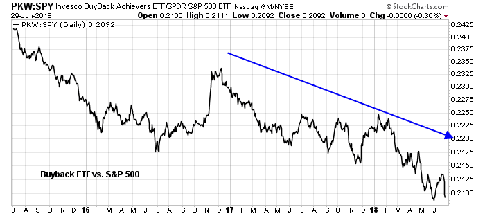 At this point, it is tempting to come to a bearish conclusion about how stock buybacks are the only activity holding up the market. However, I would point out that the stock buyback ETF (PKW) has underperformed the market in the last three years. Something else is buoying stock prices, and it’s just buybacks.