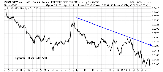 - SMI has fallen dramatically, and at the same time, buyback stocks (whose buyback levels are rising) have similarly lagged the market in the same time frame.