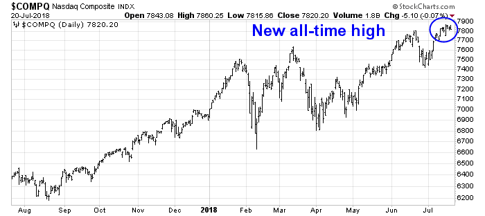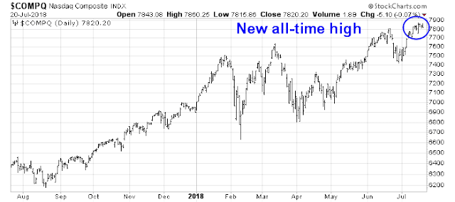 In the meantime, the SPX pulled back from its upside breakout at 2800, but the breakout is holding. Also helpful to the bull case is the all-time high seen in the NASDAQ Composite last week.