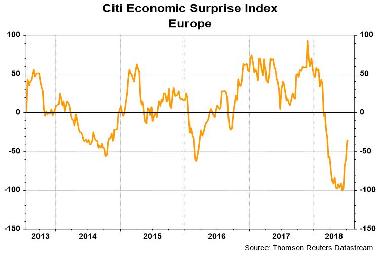 The technical price recoveries in these regions are also supported by recoveries in the regional Economic Surprise Indices (ESI), which measure whether high frequency economic releases are beating or missing expectations. Here is ESI Europe.