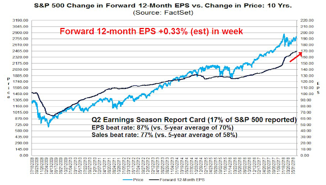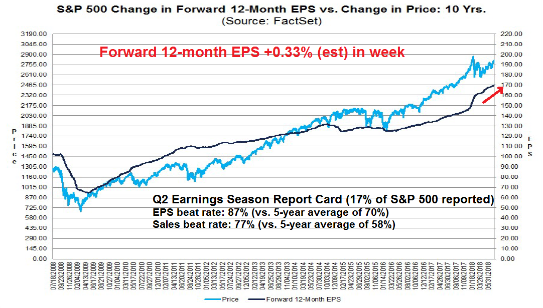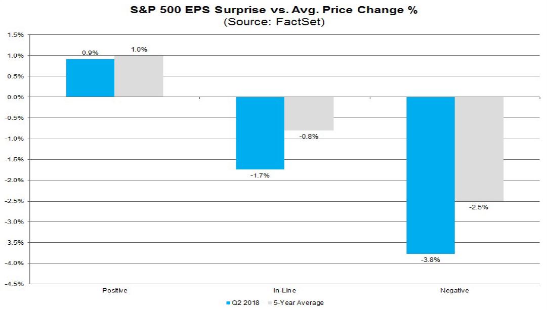 In addition, stock prices are behaving as expected. The market is rewarding earnings beats and punishing misses. There had been some concern among analysts that the market reaction may be skewed if companies raised concerns about rising tariffs and trade friction, regardless of past results. So far, that does not appear to be the case.