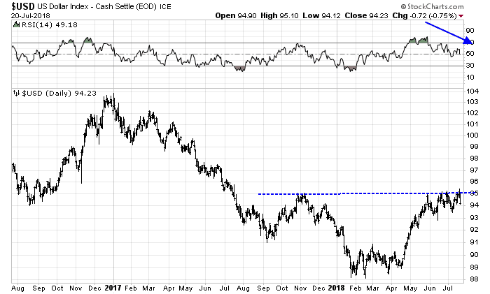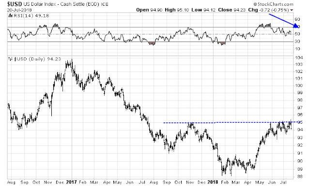 Looking to the week ahead, the key risk to the bullish narrative is an upside breakout in the USD Index. The USD Index is once again testing a key resistance level while exhibiting a negative divergence. However bearish the technical indicators, this does not preclude further USD strength, which is likely to induce a risk-off episode, particularly in emerging market stocks and bonds.