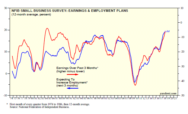 Ed Yardeni recently highlighted the surge in small business confidence, earnings and employment plans as part of a scenario of what could go right.