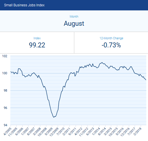 Instead of focusing on survey opinion data of how respondents felt, I analyzed hard figures of actual small business employment from Paychex, which processes payroll data for a wide swath of American small businesses. To my surprise, the Paychex Small Jobs Index was actually declining. Wait, what?