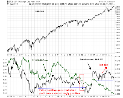 The 2-10 yield curve is also an indicator that tracks the BKX/SPX ratio quite closely. The relationship isn’t a perfect fit. For example, the two diverged in late 2017 when financial stocks surged in anticipation of the tax cut bill. Nevertheless, past instances of BKX/SPX technical breakdowns have coincided with yield curve inversions. The false positive breakdown BKX/SPX occurred when the yield curve was still healthy and positively sloping by over 1%.