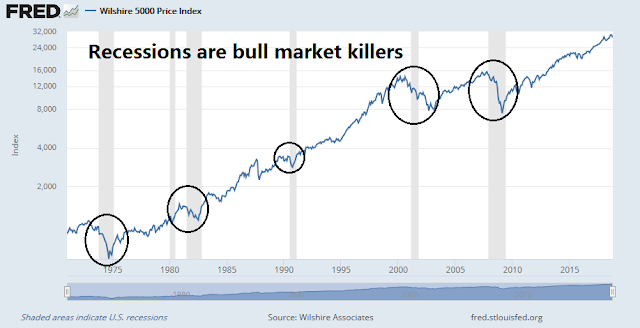 There are numerous reasons to support the case that the latest round of weakness is only a correction. First, there are no signs of a recession yet. As I pointed out last week (see A recession in 2020?), my recession indicators are not flashing red, only flickering. We do not have a definitive recession signal yet. As investors know, recessions are bull market killers.