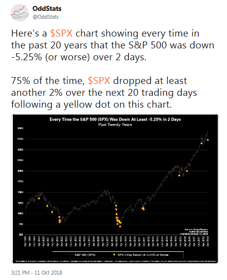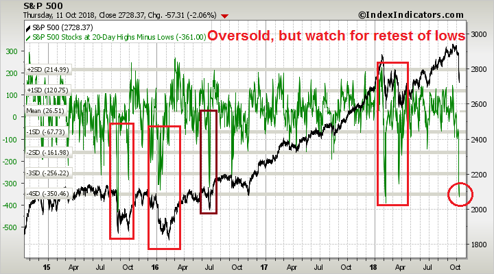 For now, my working hypothesis is a bounce of unknown magnitude and unknown duration, followed by a re-test of the lows (via OddStats). Severely oversold markets just don’t recovery and go straight up.