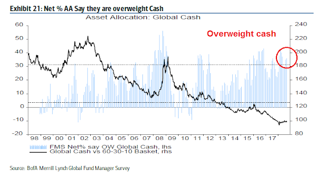 The latest BAML Fund Manager Survey also shows that managers are overweight cash…
