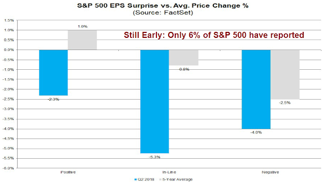 The early results are mixed . We are entering Q3 earnings season with heightened expectations and subpar corporate guidance. So far, companies with earnings beats are barely outperforming, but earnings misses are not being severely punished. As only 6% of the index has reported, these results are highly preliminary. We need to wait for more reports to gain a better perspective.