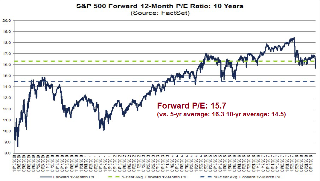 Corporate earnings decline in recessions. If there is no recession, equity valuations are not stretched by historical standards. The latest update from FactSet shows that the forward P/E ratio is 15.7, which is below its five-year average but above its 10-year average. Further stock market weakness would represent a valuation reset that would make US stocks quite attractive by historical standards,