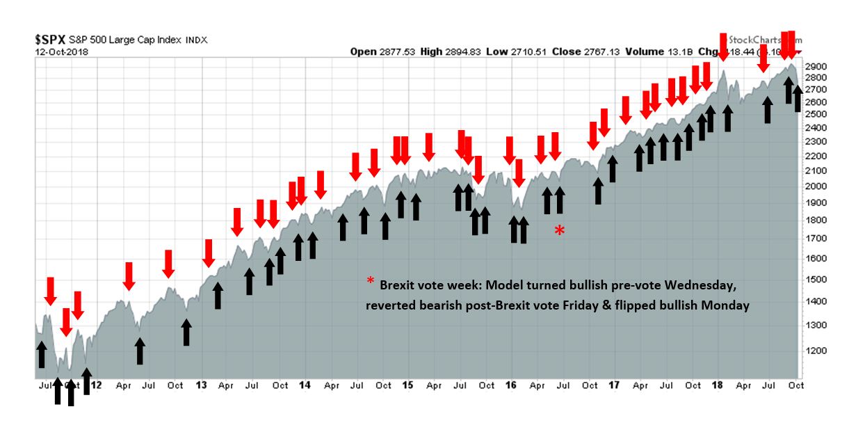 Update schedule: I generally update model readings on my site on weekends and tweet mid-week observations at @humblestudent. Subscribers receive real-time alerts of trading model changes, and a hypothetical trading record of the those email alerts is shown here.