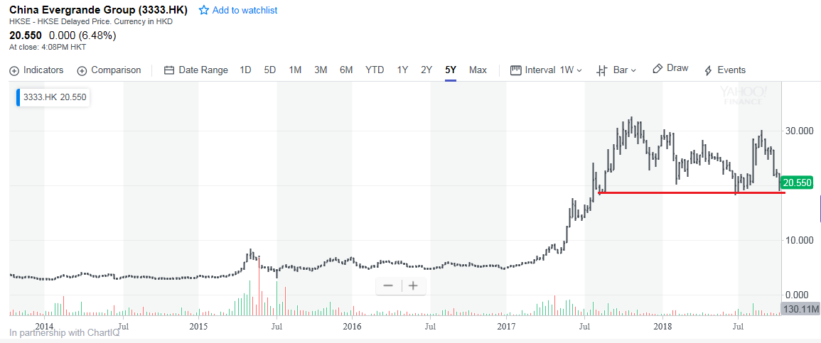As well, it is becoming clear that China and Asia are undergoing a major slowdown. The key question is the resiliency of the Chinese economy and financial system. The canaries in the coalmine are the Chinese property developers, such as China Evergrande (3333.HK). So far the stock has retreated and it is testing a major support level. A decisive break could be a real-time signal of an uncontrolled unwind of leverage whose effects could spread worldwide. Watch closely!