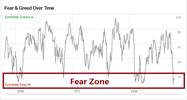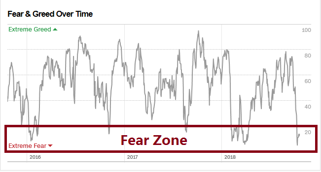 The Fear and Greed Index stands at 14, which is in the sub-20 level where past bottoms have been made. However, low readings represent a bottoming condition and they are not immediate actionable buy signals.