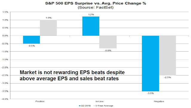 Here is the bad news. While the market punished earnings misses, it did not reward beats. The market’s failure to respond to positive news is a bearish sign that investor psychology may become excessively bullish, and some adjustments to expectations need to be made.