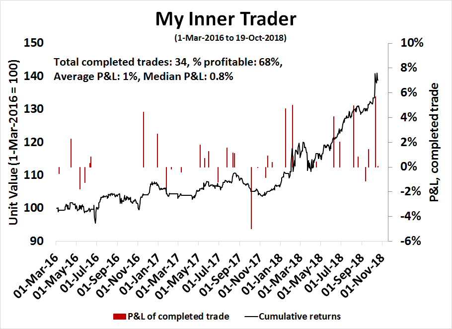 Subscribers receive real-time alerts of model changes, and a hypothetical trading record of the those email alerts are updated weekly here. The hypothetical trading record of the trading model of the real-time alerts that began in March 2016 is shown below.