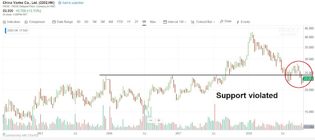 Here is China Vanke (2202.HK), which is in a downtrend and broke a support level.
