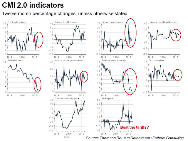 The softness in property prices is occurring against the backdrop of a weakening economy. Seven out of 10 of Fathom Consulting’s CMI 2.0 Indicators, which is an array of indicators that monitor the economy, are falling. Only one out of the 10 is rising, real exports, but the increase could be attributable to a surge from a “beat the tariffs” effect that is likely to be given back in the next few months.