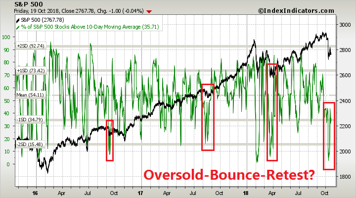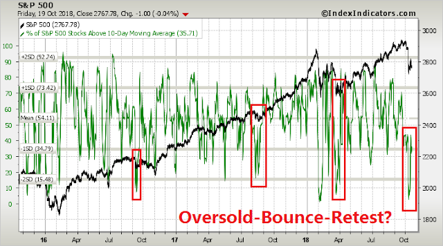 Short-term breadth indicator readings from Index Indicators are consistent with past oversold-bounce-retest patterns seen in past bottoms.