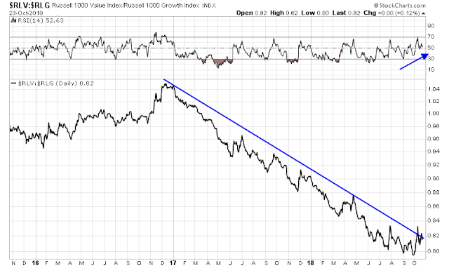 This kind of market action can be interpreted in two ways. On one hand, it is not unusual to see defensive sectors become the sector leaders during a market pullback. Once the bulls regain their footing, the high beta sectors can regain their footing and lead the market upwards again. On the other hand, the emergence of defensive and value leadership can be a signal of a regime shift where the bears are slowly taking control of the tape.