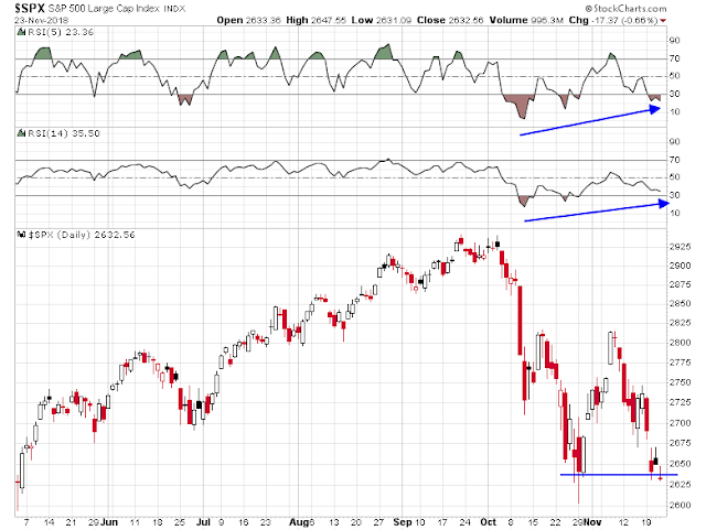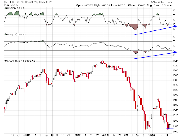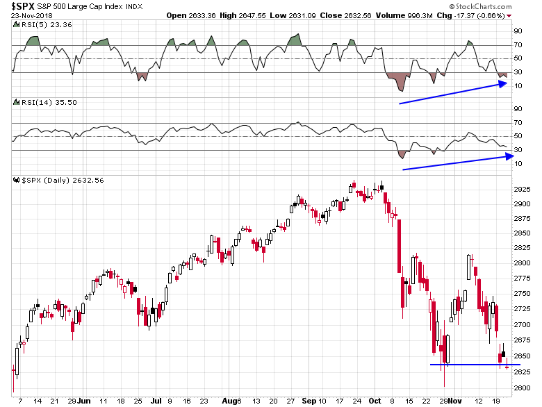 In addition, we are seeing positive RSI divergences across a variety of US equity indices. Here is the SPX.
