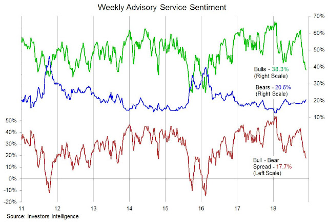 I have highlighted extreme levels of equity bearishness in the past, in the form of AAII sentiment and the NAAIM Exposure Index, so I won’t repeat myself. Another data point of a crowded short appeared this week in the form of II sentiment. The bull-bear spread has fallen to levels not seen for two years.