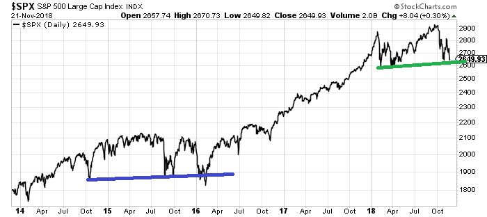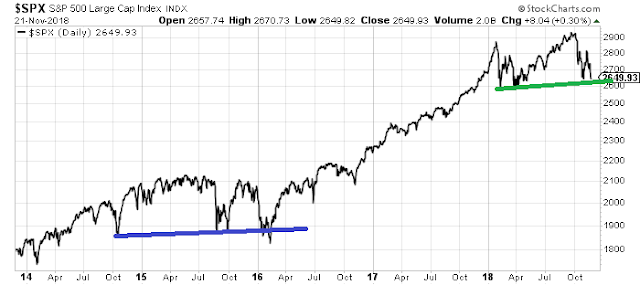 Helene Meisler also very succinctly summarized the bull case last weekend in a Real Money article. The article is well worth reading in its entirety, but here are her key points. The chart patterns between the current episode of weakness looks very similar to the one experienced in 2015-16. It is therefore natural to think that the market will rally and come back down to re-test the previous lows.