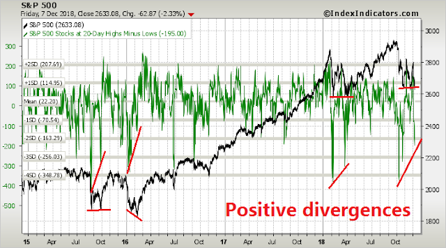 On the other hand, longer term breadth indicators are exhibiting positive divergences seen in past bottoms.