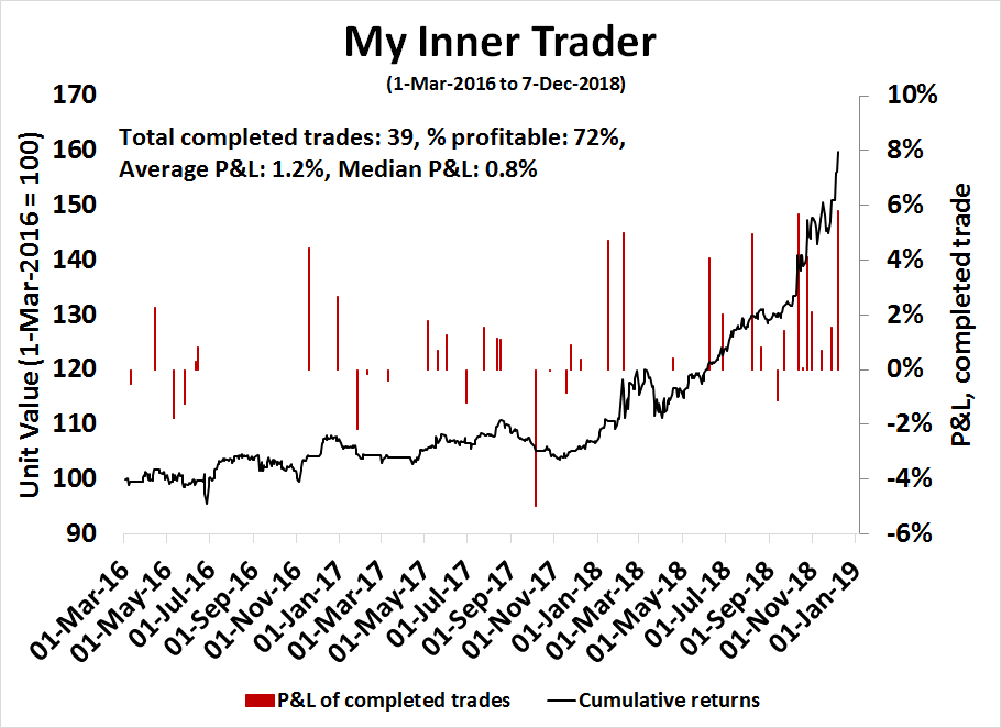 Subscribers receive real-time alerts of model changes, and a hypothetical trading record of the those email alerts are updated weekly here. The hypothetical trading record of the trading model of the real-time alerts that began in March 2016 is shown below.