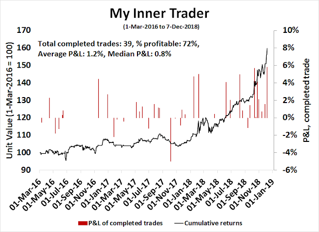 Update schedule: I generally update model readings on my site on weekends and tweet mid-week observations at @humblestudent. Subscribers receive real-time alerts of trading model changes, and a hypothetical trading record of the those email alerts is shown here.