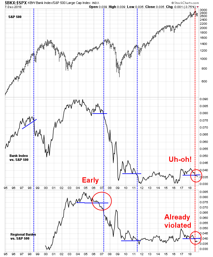 I have also pointed out before the relative breakdown of bank stocks have led to major market dislocations in the past.